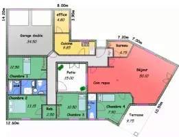 T6 153m² avec patio central + 2 Garages 34,5m² Monté hors d'eau, hors d'air sur dalle client à partir de 210 970 € avec menuiseries PVC blanc et volets roulants électriques, façade bardage Cédral, extérieur fini. Prix KIT Gros oeuvre seul, non monté 151 500 €. Possibilité de fournir les Kits Plâtrerie, Plomberie et Electricité.